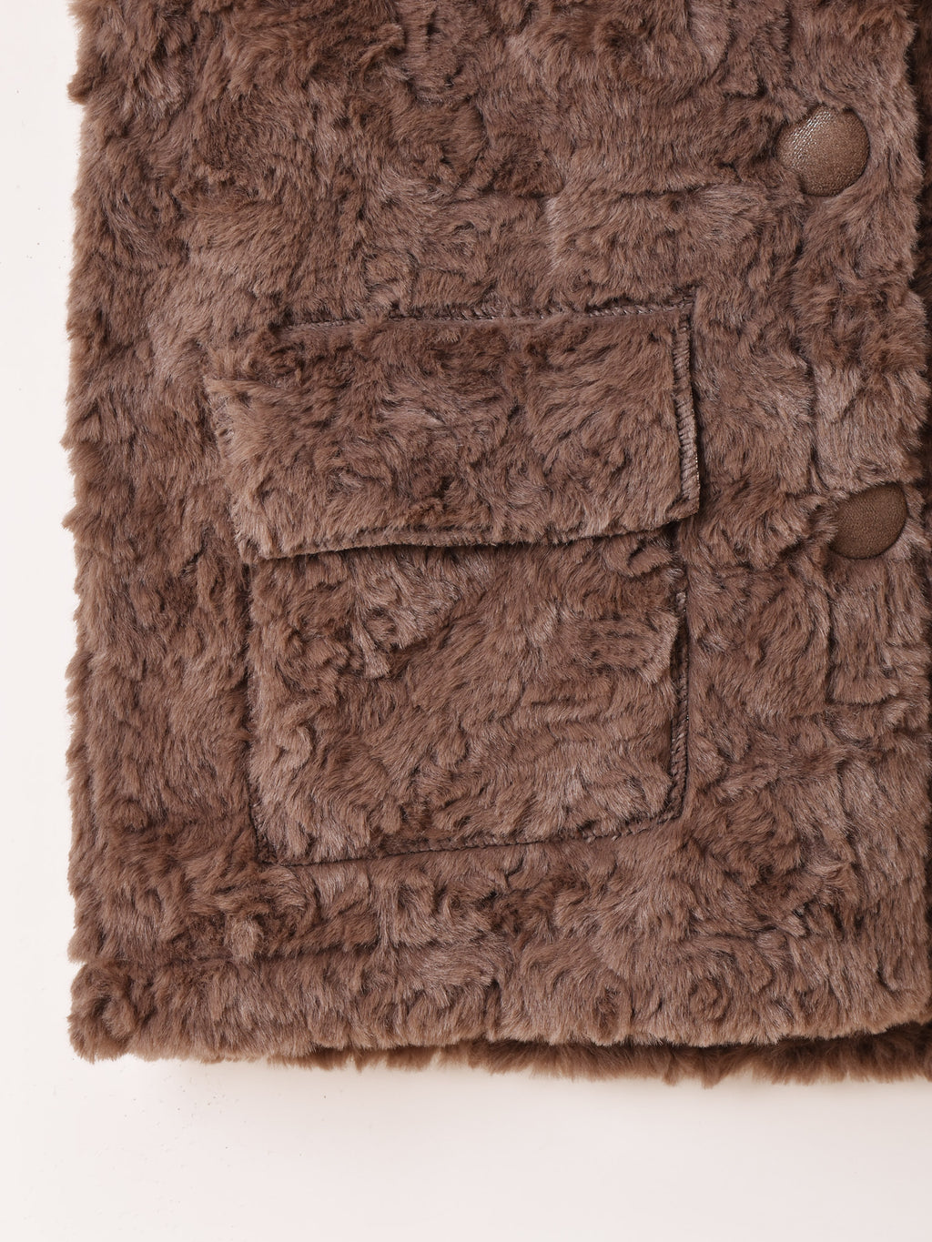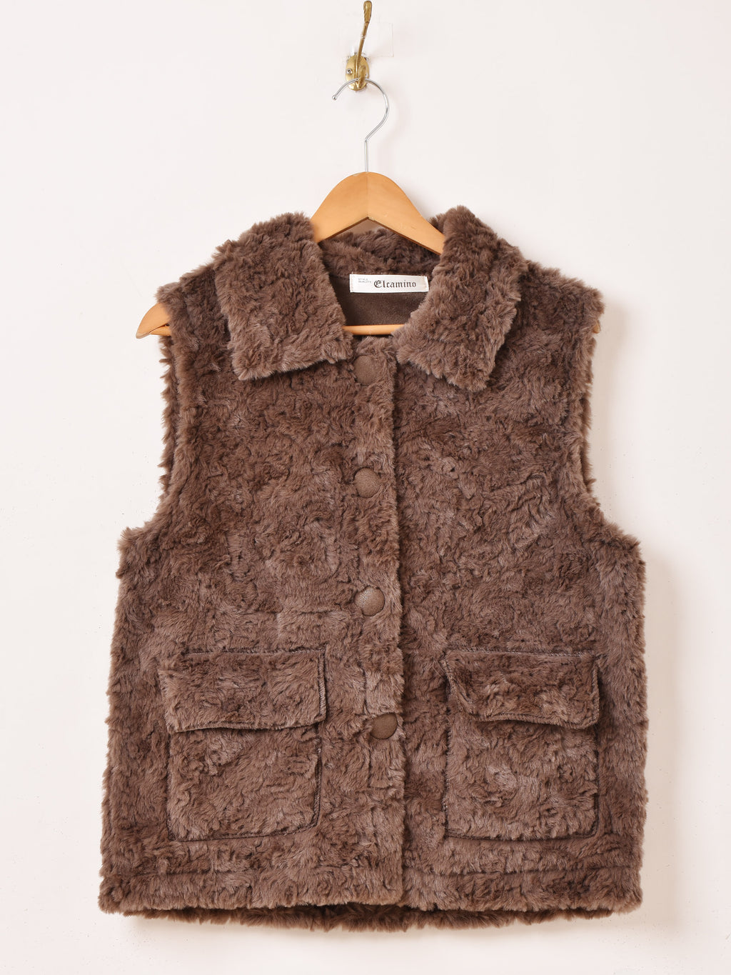 肌触りの柔らかいファーベスト。普段のコーデにさっと羽織るだけでも着こなしのアクセントになる一着です。