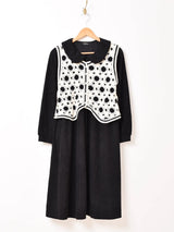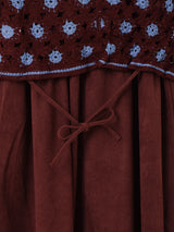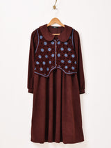 クロシェベストとコーデュロイのワンピースがセットになった一着。単品で着ることもできるので、着回しの効くアイテム。ワンピースは裏地がなく、さらっとした肌触りです。