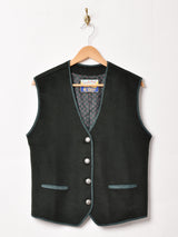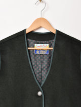 シルバーボタンと深いカラーがマッチしたチロリアンベスト。ふんわりあたたかなウール混生地です。