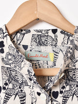 個性的な総柄デザインとカラーリングがマッチした一着。パフスリーブが女性らしさをプラスしてくれます。ハリのある、コットンリネン素材です。