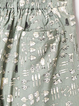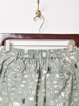 キャンプグッズのモチーフが散りばめられた、ユニークでレトロチックなショーパン。ウエストがゴム仕様なのでストレスフリーの履き心地です。