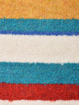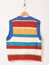 カラフルなボーダー柄が目を惹くニットベスト。柔らかな弾力のある生地感です。
