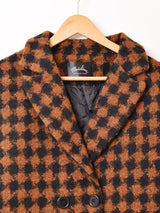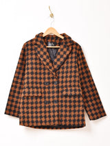 クラシックなダイアパターンが目を惹く、ダブルブレストのジャケット。オーバーサイズで中に着込んでもこなれた印象に。季節感のある、秋冬らしい生地のテキスタイルも魅力的です。