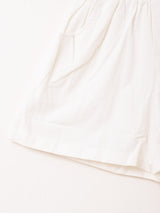 ウエストのギャザー仕様で着脱が楽ちんなショーパン。お好みでベルトをスタイリングしても◎。裏地はありませんが、着心地の良いコットン生地です。