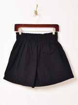 バックのギャザー仕様で着脱が楽ちんなショーパン。 お好みでベルトをスタイリングしても◎。裏地はありませんがハリのあるコットン生地で、オールシーズン着こなせる一着です。