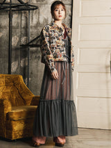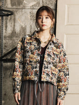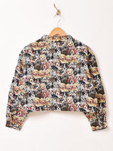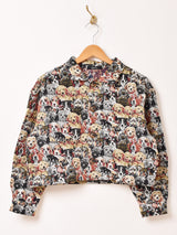 たくさんのワンちゃんたちが目を惹くタペストリージャケット。クロップド丈でスタイルアップ効果が期待できる一着です。