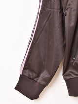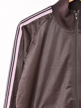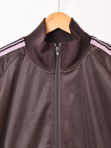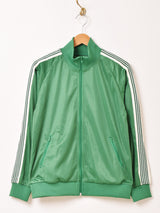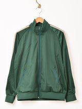 定番のライン入りデザインで使い勝手の良いトラックジャケット。ツルッとした表面のポリエステル素材です。男女兼用で着用できる3サイズ展開でご用意しました。