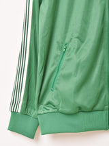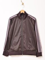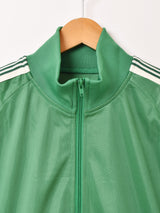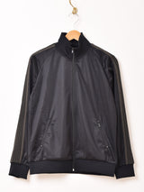 定番のライン入りデザインで使い勝手の良いトラックジャケット。ツルッとした表面のポリエステル素材です。男女兼用で着用できる3サイズ展開でご用意しました。
