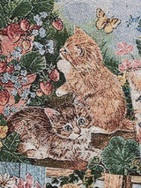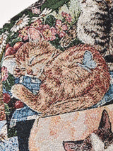 可愛らしい猫ちゃんたちの模様が目を惹くタペストリーのジャケット。アンティーク調のデザインが魅力的で、古着ライクな一着。裏地付きです。