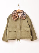 ヒョウ柄の襟と内側に施された肌触りのよいフワフワのフェイクファーが、見た目からして暖かく魅力的なジャケット。裾はドローコード付き、ファーは取り外しが可能。コンパクトなクロップド丈が様々なスタイルに合わせやすいカジュアルなデザインです。