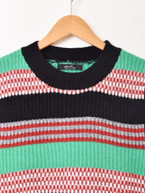 グリーン×レッドの配色が目を惹くニットベスト。アクリル素材で程よい厚みのある生地感です。
