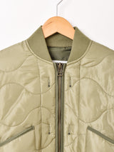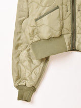 人気のミリタリーライナーをサンプリングし、ショート丈のブルゾンジャケットにアレンジして制作した一着。ミルスペックやボタン穴など、ミリタリーのディテールをしっかりと盛り込んでいます。短い丈感でどんなボトムスとも合わせやすく、脚長効果も期待できそう。中綿入りで防寒対策も◎。
