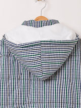 秋冬らしいチェック柄の中綿入りジャケット。クロップド丈がすっきりと、スタイル良く着こなせそう。フードは取り外し可能です。