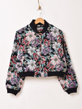 タペストリー生地とベロア生地で構成された大花柄が目を惹くブルゾン。しっかりとした生地感でボリュームが出ますが、クロップド丈でバランスよく着ていただけます。