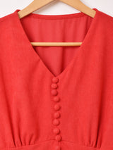 【2色展開】Meridian ビビッドカラー Vネック 長袖ワンピース