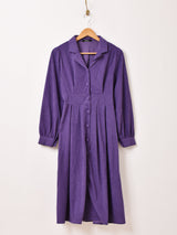 オープンカラーのロングスリーブワンピ。前開きなので軽い羽織りのようにも使えます。コーデュロイのような畝の生地で、肌触り柔らかく、少し伸縮性があります。