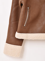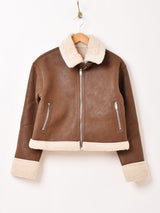 B-3フライトジャケットのようなディテールで、首元まであたたかなジャケット。柔らかな合成皮革を使用し、内側はボア仕様。ショート丈でスタイル良く、すっきりと着こなせる一着です。