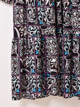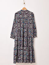 【2色展開】Meridian パネル柄 長袖 ティアードワンピース