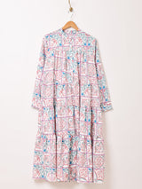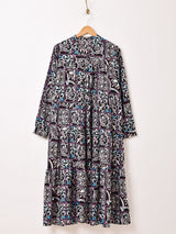 【2色展開】Meridian パネル柄 長袖 ティアードワンピース