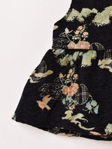 オリエンタルなタペストリー生地が魅力的なベスト。ペプラムシルエットで体型カバーも叶う一着です。いろんなトップスと合わせてレイヤードコーデが楽しめます。