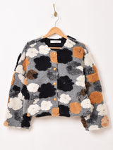 【3色展開】Elcamino 花柄 ボア ノーカラージャケット