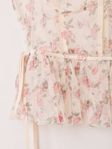 花柄のシアー素材のコルセット型ビスチェ。サイドのリボンで身体にフィットさせられ、ペプラムのフリルでウエストカバーができるのでスタイルアップが叶います。レイヤードに活躍間違いなしのアイテムです。