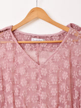 上品な花柄のレース生地で仕立てられた長袖ドレス。首の開いた襟元やキュッと絞ったカフスが、華やかなで女性らしい印象を与えてくれます。大胆な透け感で、様々なレイヤードコーディネートに馴染んでくれる一着です。