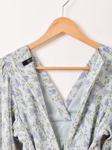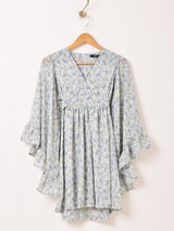 【2色展開】Meridian 花柄 フレアスリーブ ミニ 長袖ワンピース