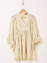 【2色展開】Meridian 花柄 フレアスリーブ ミニ 長袖ワンピース