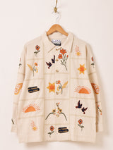 花や英字ロゴなどのレトロチックなパッチワーク風刺繍をあしらったジャケット。風合いの良いコットン素材で、シャツ感覚でも着られます。ややオーバーなサイズ感がルーズな着こなしに◎。ジャケットとしてもシャツとしても着回せて、コーディネートの主役になる一着です。