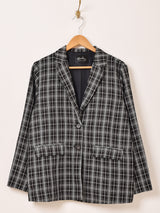 シンプルなチェック柄のブレザー。ゆとりのあるルーズなサイズ感がカジュアルにもフォーマルシーンにも着回せるので飽きのこない一着です。