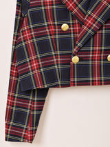 トレンド感のあるショート丈で、こなれた印象に仕上げてくれるテーラードジャケット。ダブルブレスト仕様、ブリティッシュなチェック柄に映えたゴールドのボタンが雰囲気抜群の一着です。