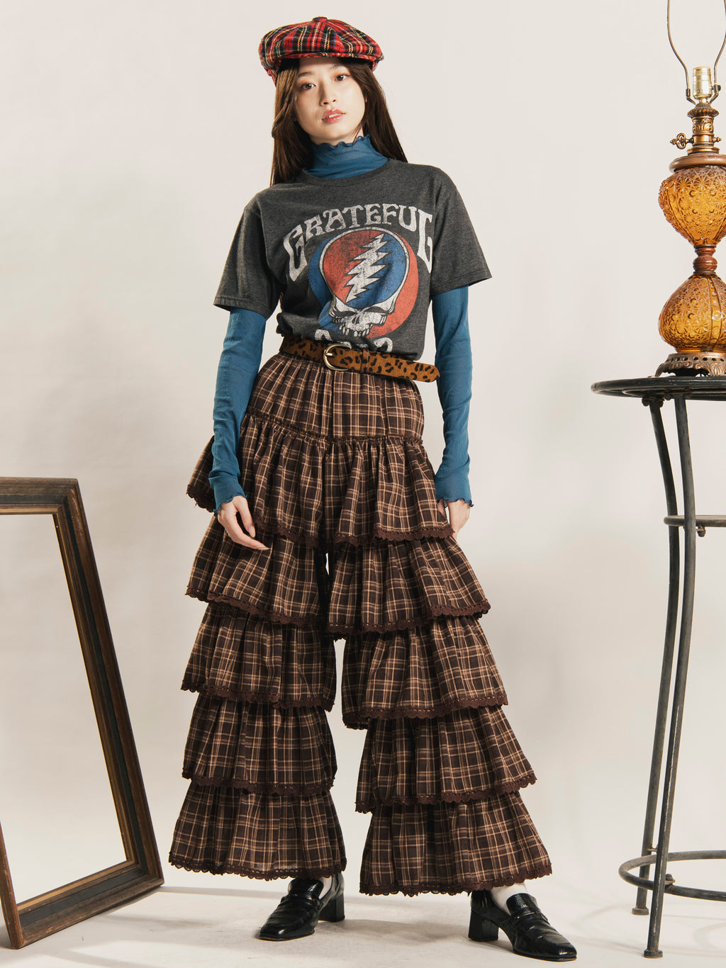 【2色展開】Meridian チェック柄 フリルパンツ