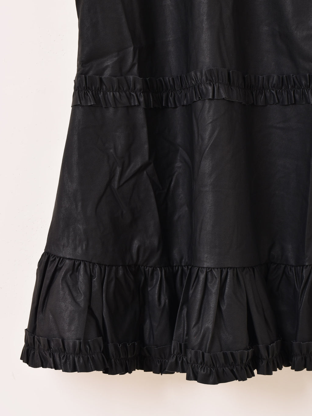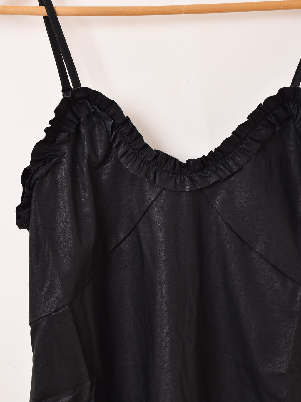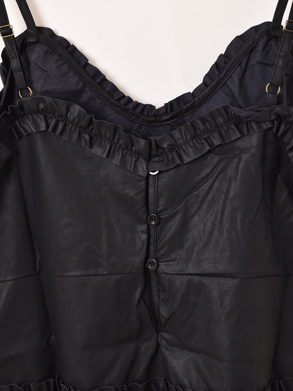 【2色展開】Meridian フェイクレザー フリル キャミソール