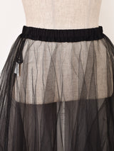 チュールの2枚重ねで程よいボリューム感が生まれ、パニエのようなシルエットが可愛いスカート。絶妙な透け感とミディ丈で、パンツスタイルやワンピースの上からもレイヤードが可能。トレンド感満載のコーディネートに着回せる一着です。