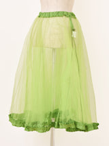 チュールの2枚重ねで程よいボリューム感が生まれ、パニエのようなシルエットが可愛いスカート。絶妙な透け感とミディ丈で、パンツスタイルやワンピースの上からもレイヤードが可能。トレンド感満載のコーディネートに着回せる一着です。