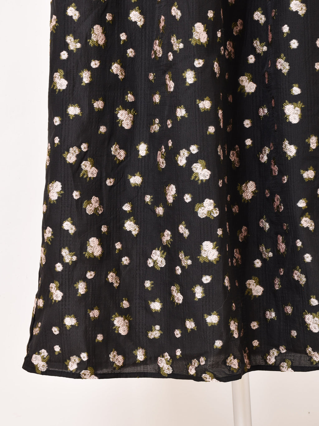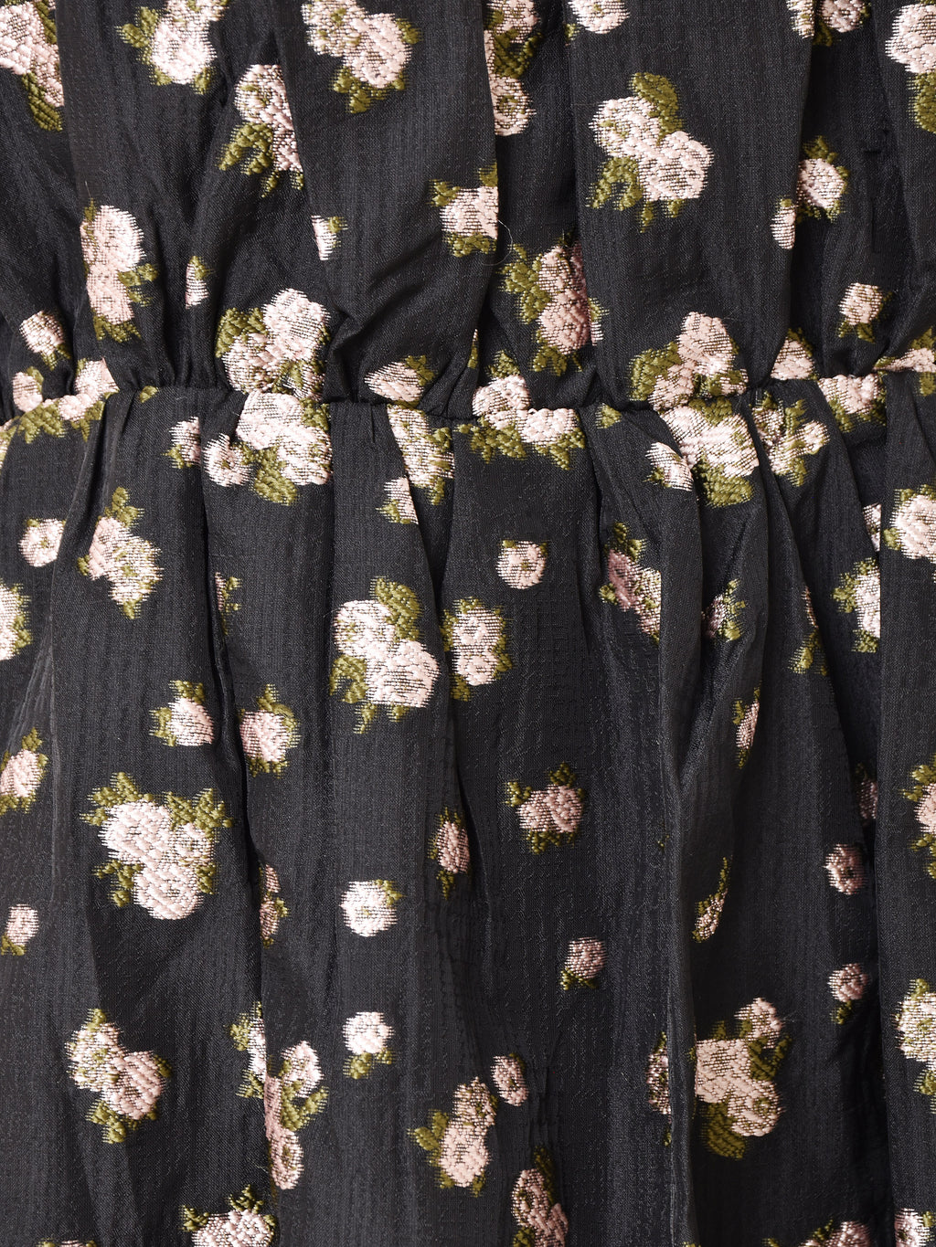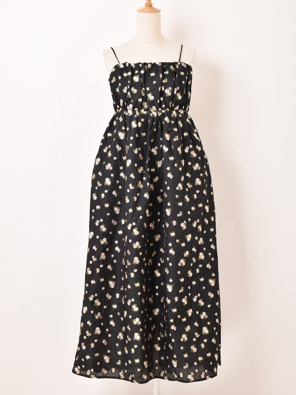 ジャガード織りの小花をあしらったキャミワンピ。華奢な肩紐は調節可能。ざっくりと開いた背中のデザインはレースアップになっており、よりバックスタイルが映える一着です。オールシーズンを通してレイヤードコーデが楽しめます。