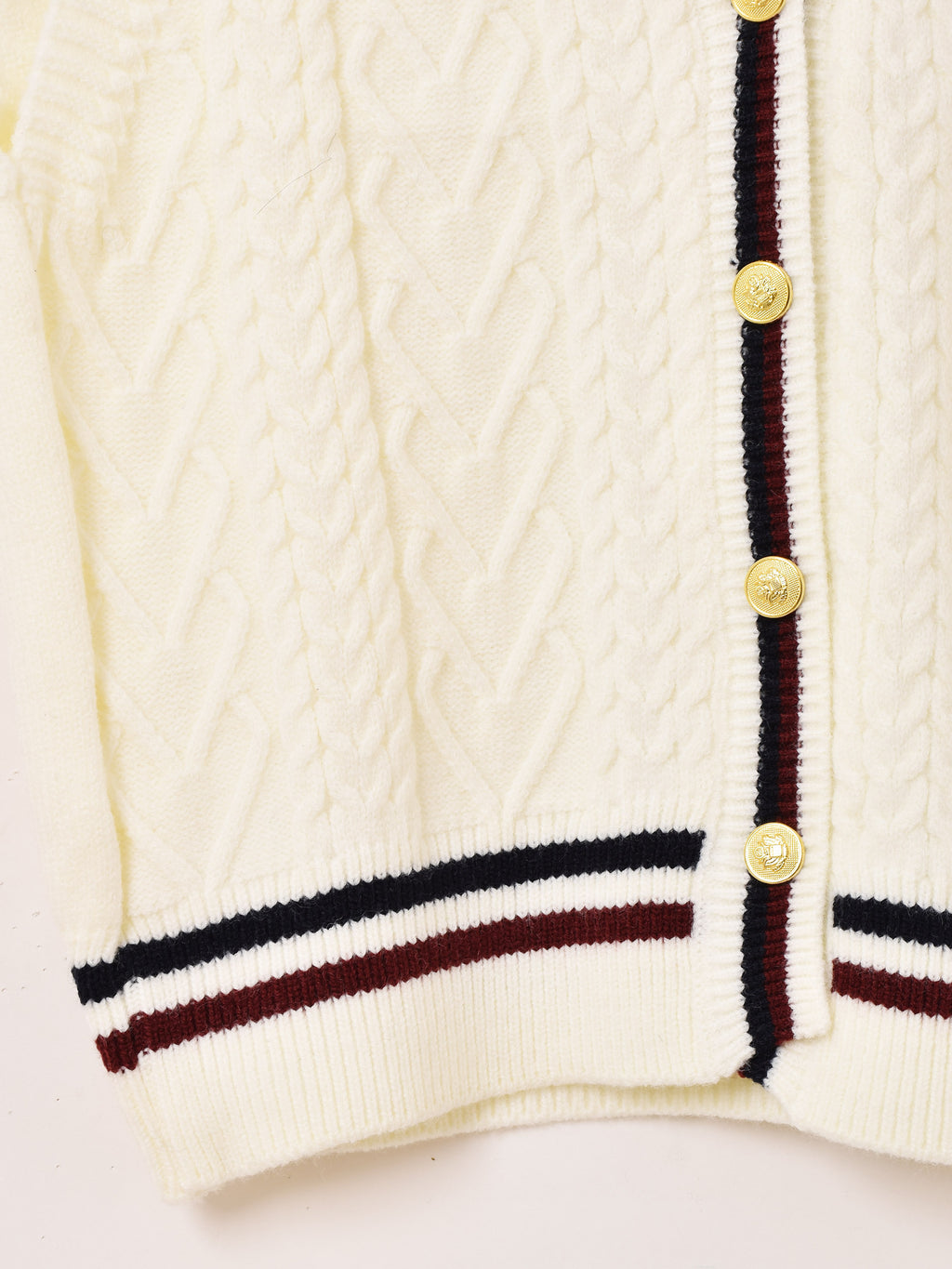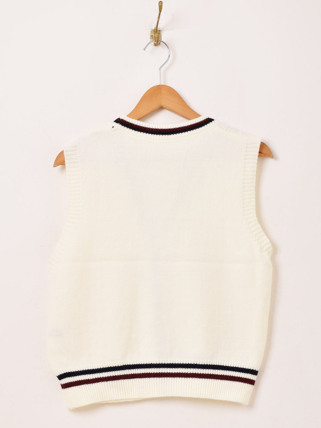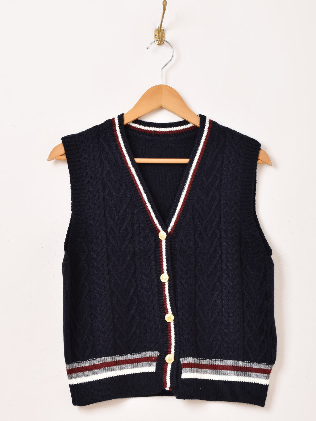 プレッピーなデザインが魅力的なニットベスト。コーディネートに馴染みやすく、レイヤードアイテムとして着回せる一着です。