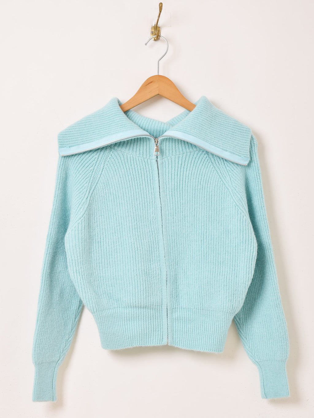 【3色展開】Meridian ビッグカラー ジップ カーディガン