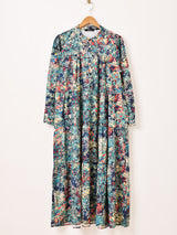 【3色展開】Meridian 総柄 長袖 ティアードワンピース