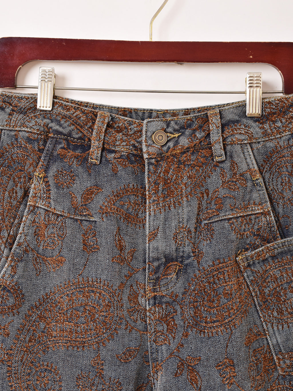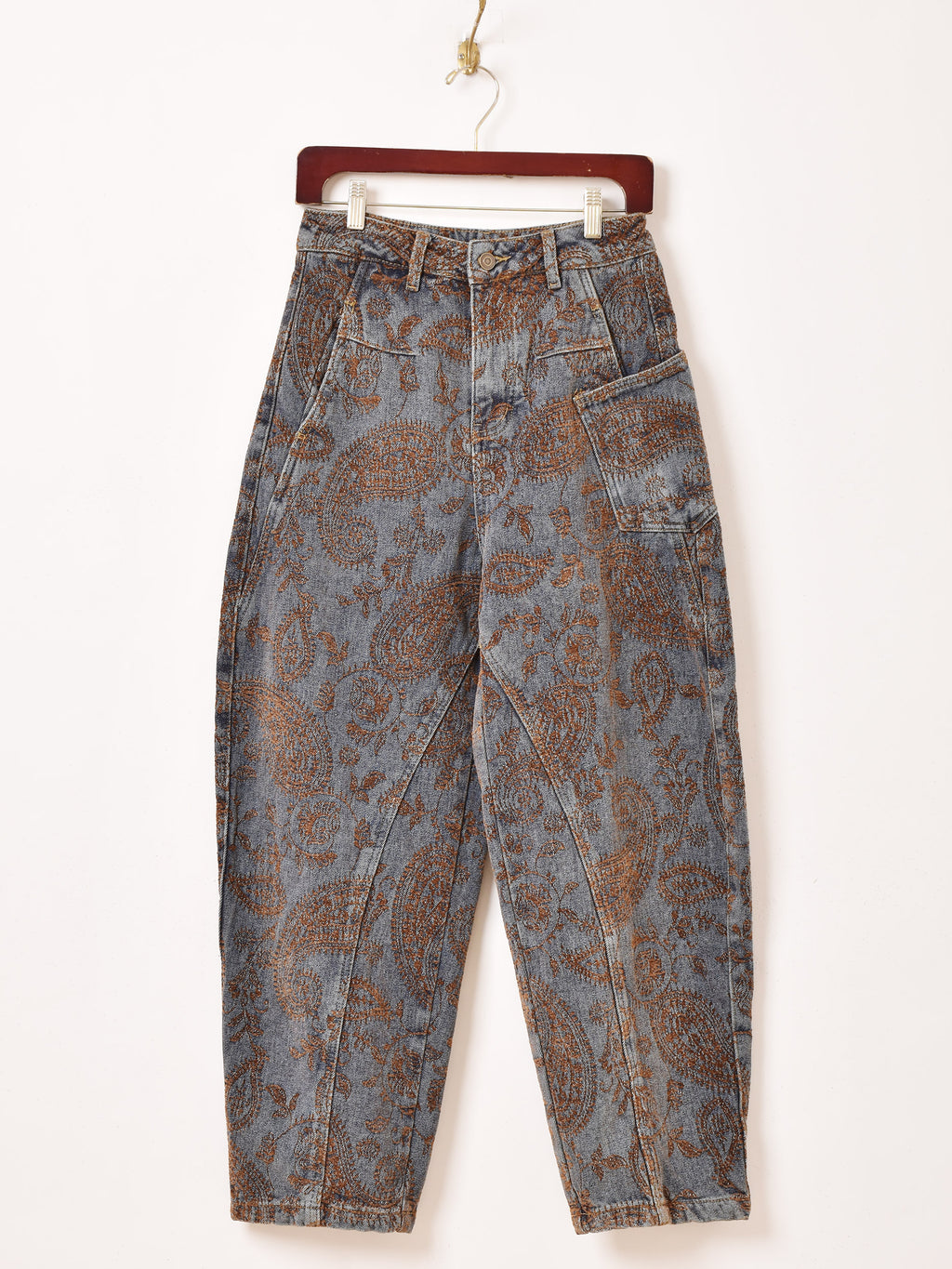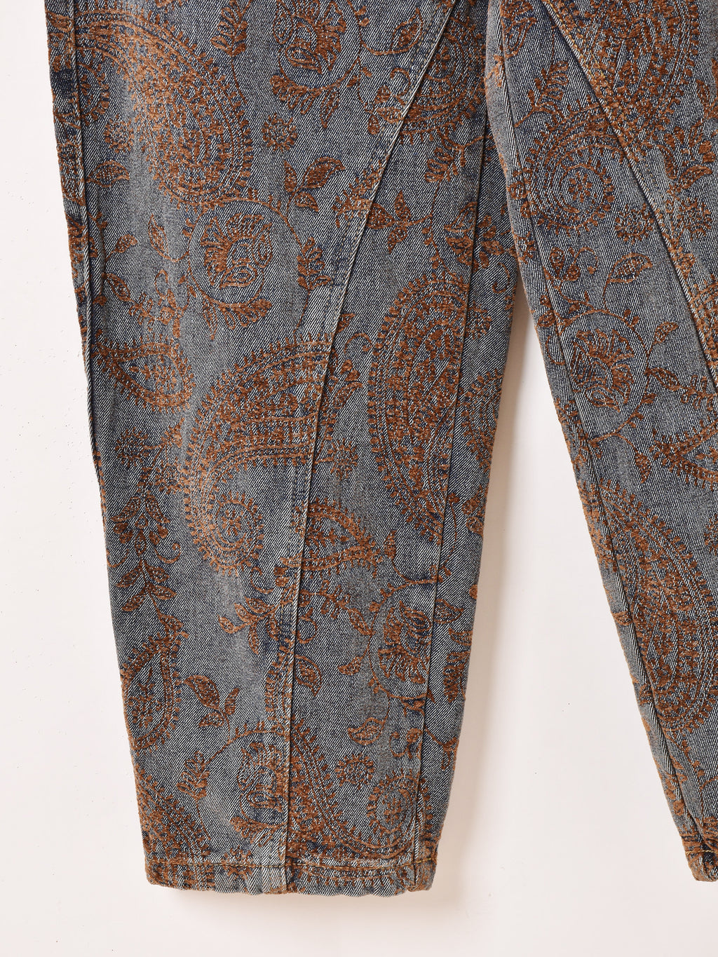 トレンド感のあるカーブシルエット×ハイウエストで、体型カバーしつつスタイルアップが叶う一着。緩やかな曲線の控えめシルエットがポイント。デニムにジャガードを施し、クラシカルな雰囲気がおしゃれ度を高めてくれます。