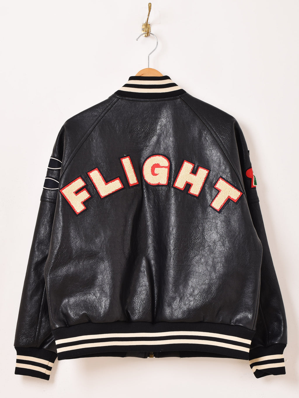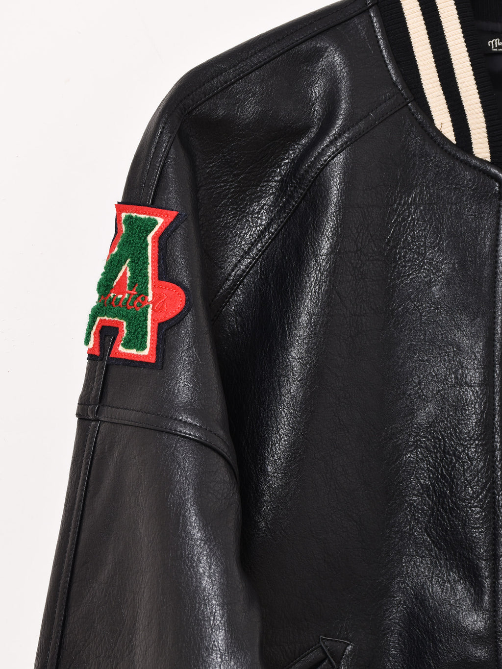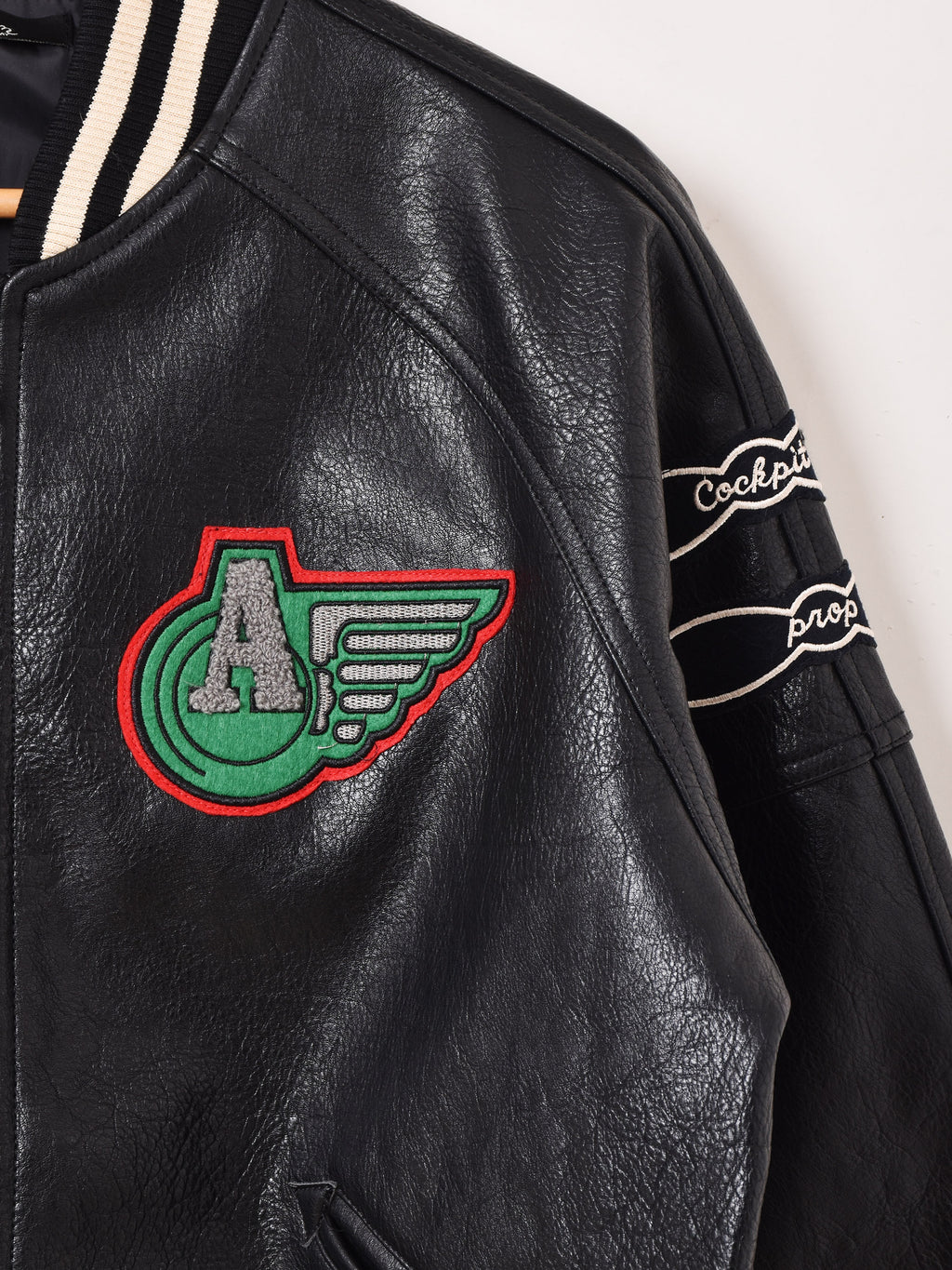 【2色展開】Meridian パッチ刺繍 フェイクレザー スタジアムジャケット