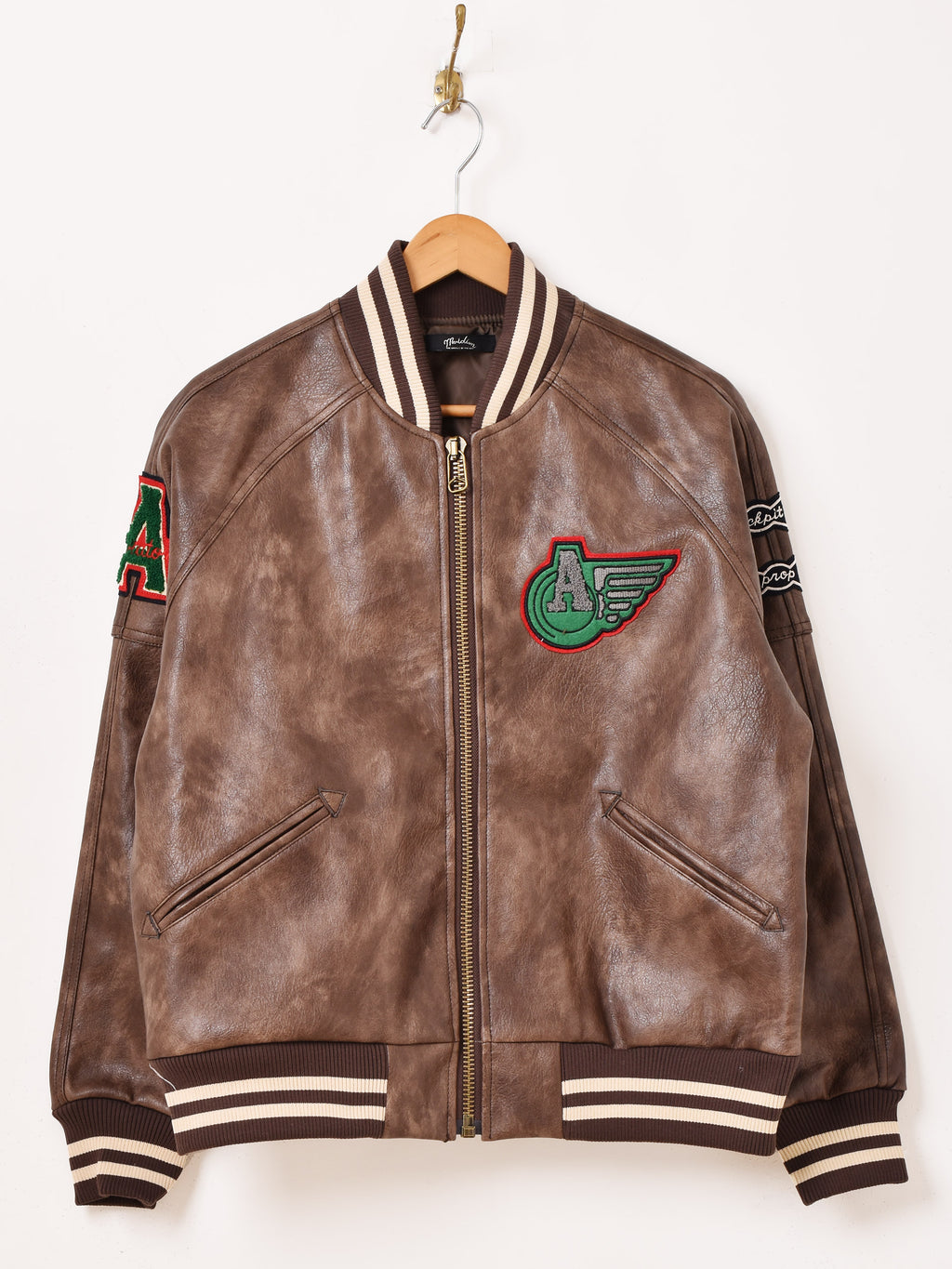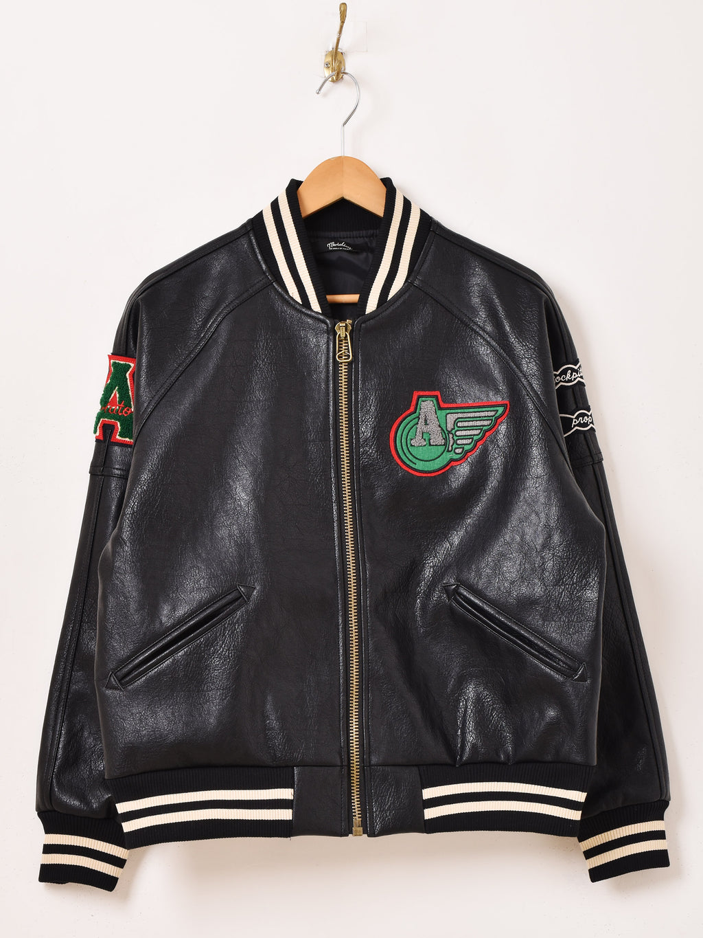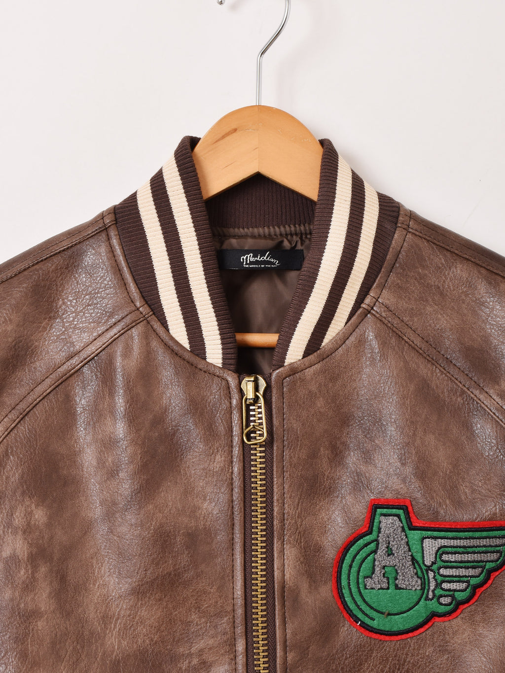 【2色展開】Meridian パッチ刺繍 フェイクレザー スタジアムジャケット