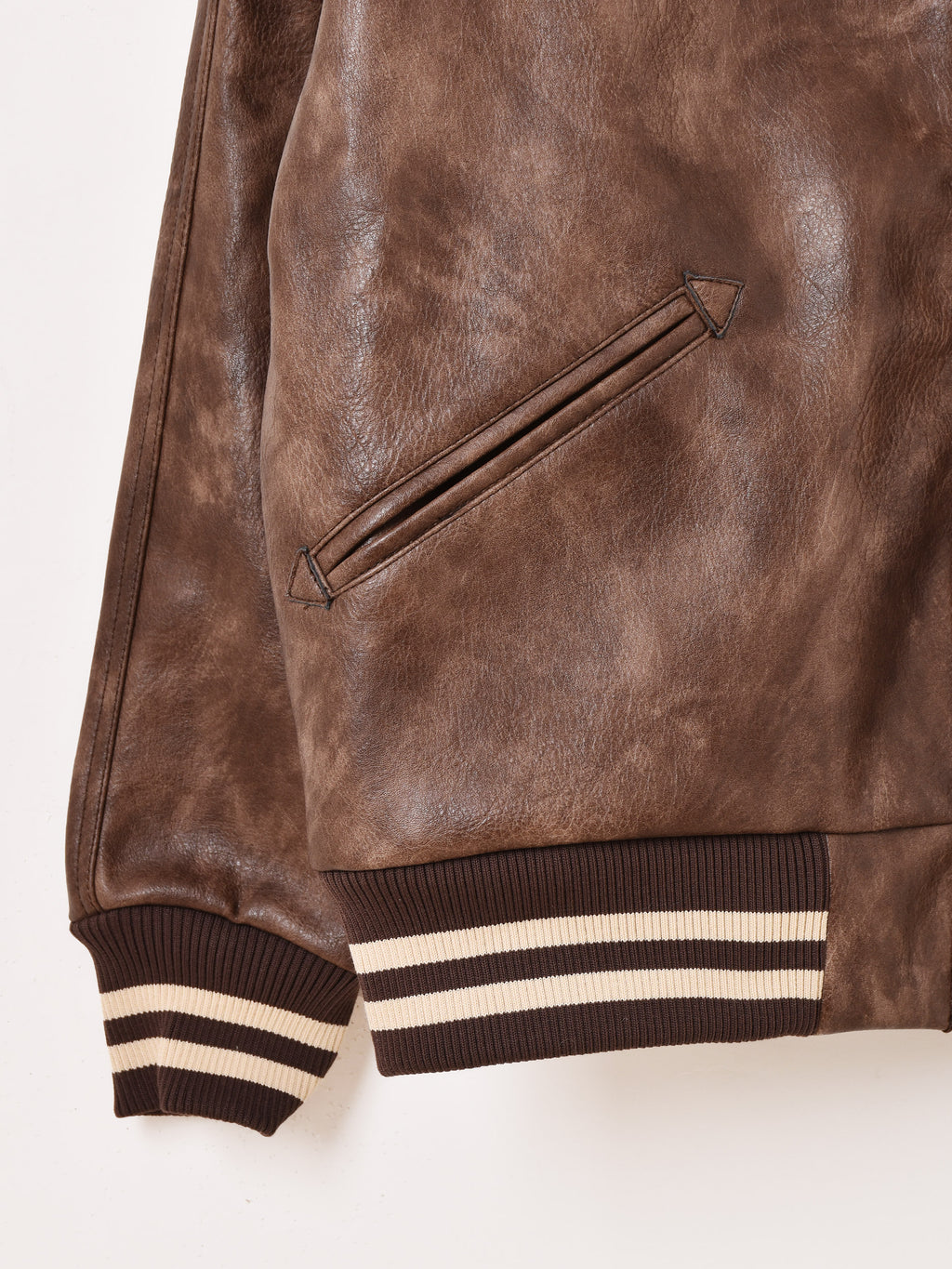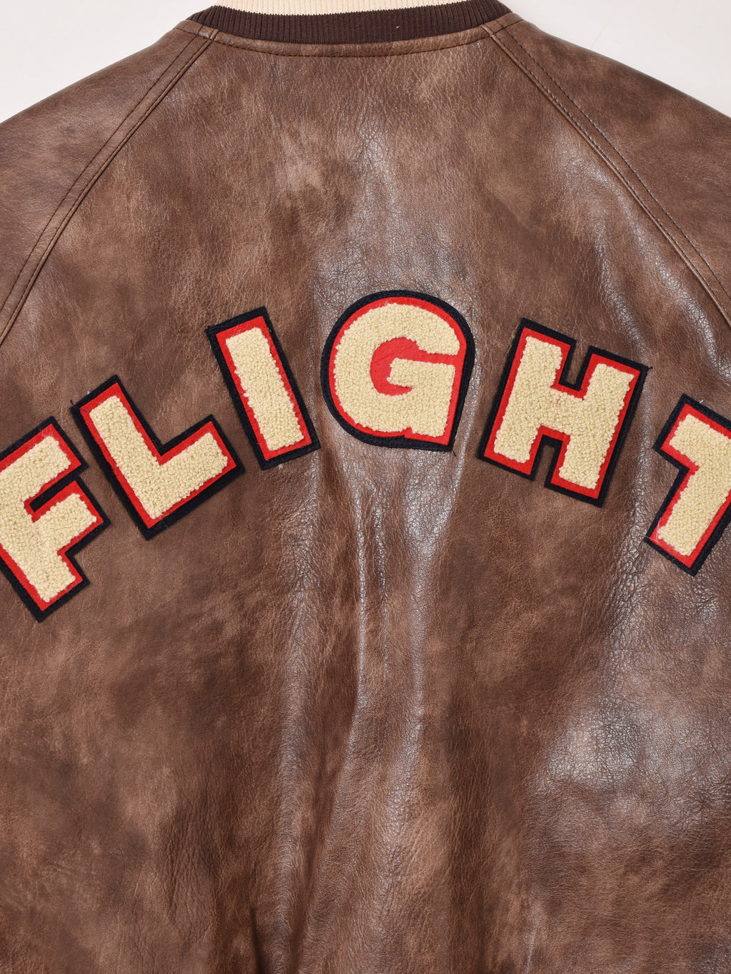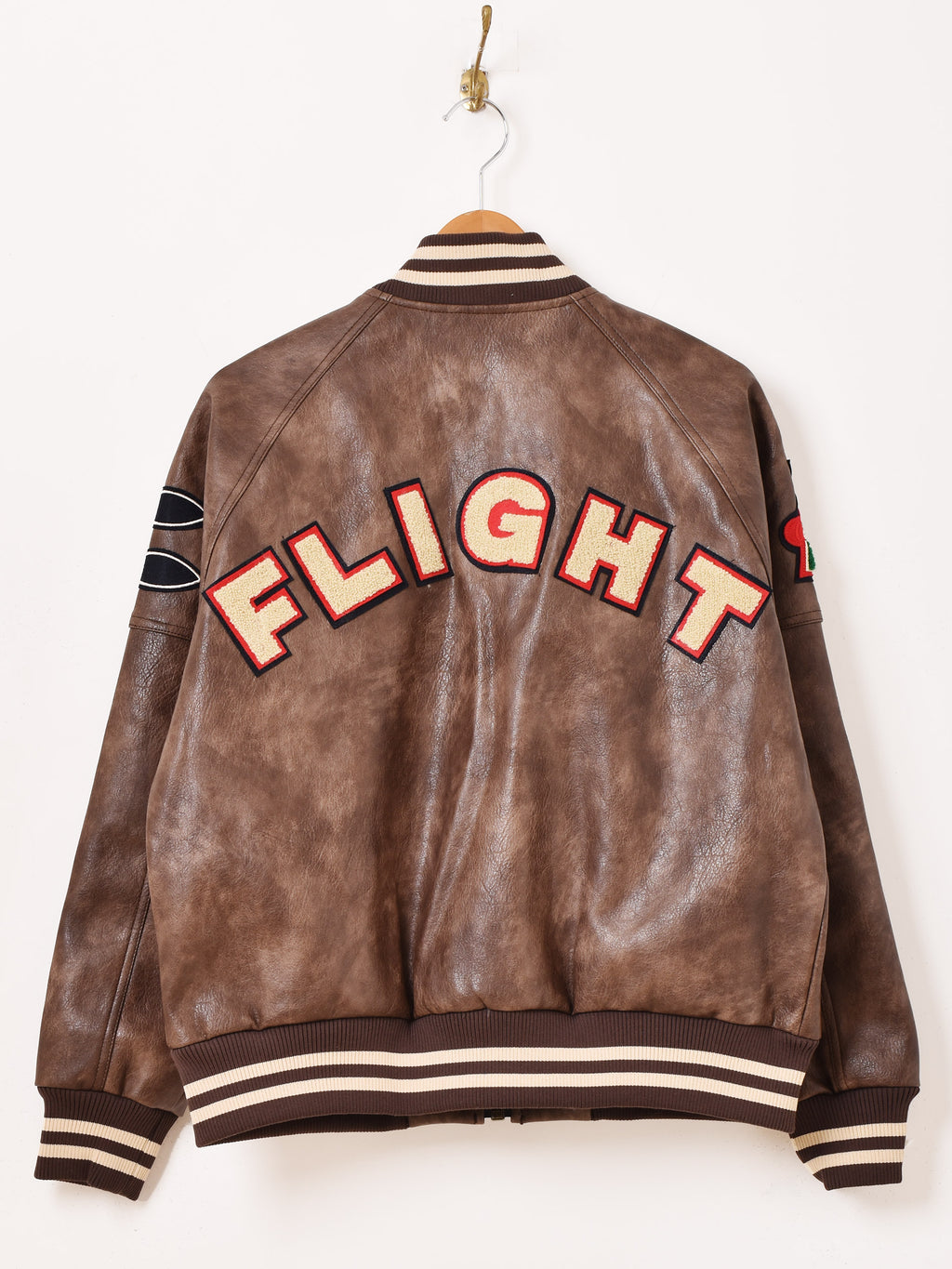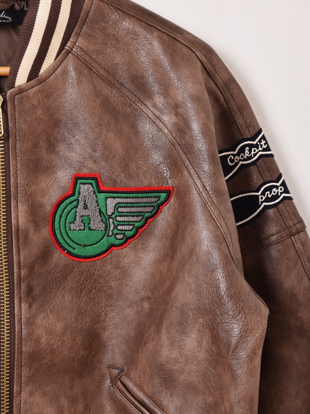 【2色展開】Meridian パッチ刺繍 フェイクレザー スタジアムジャケット