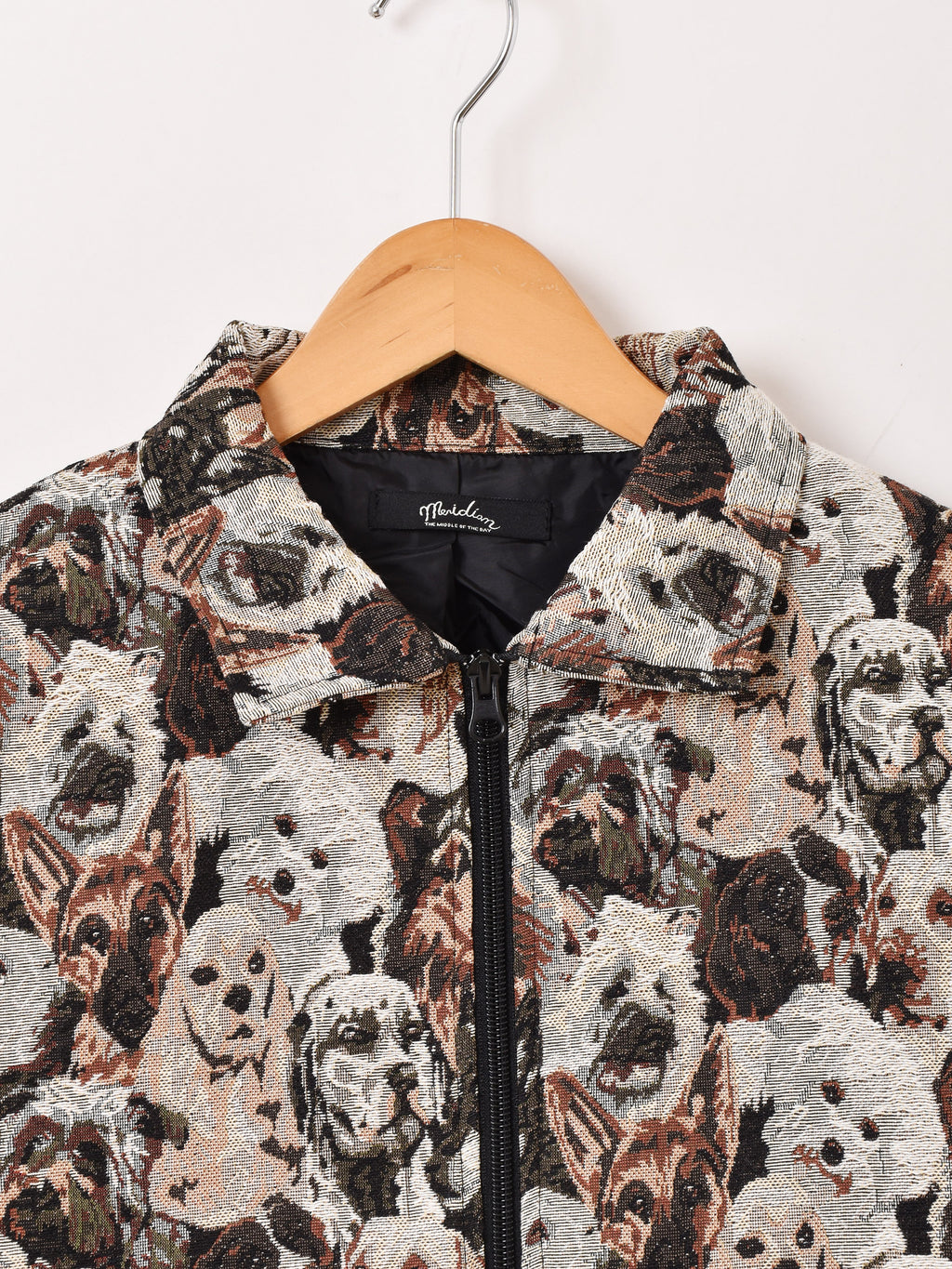 【2色展開】Meridian アニマル ゴブラン織り ショートジャケット 犬柄