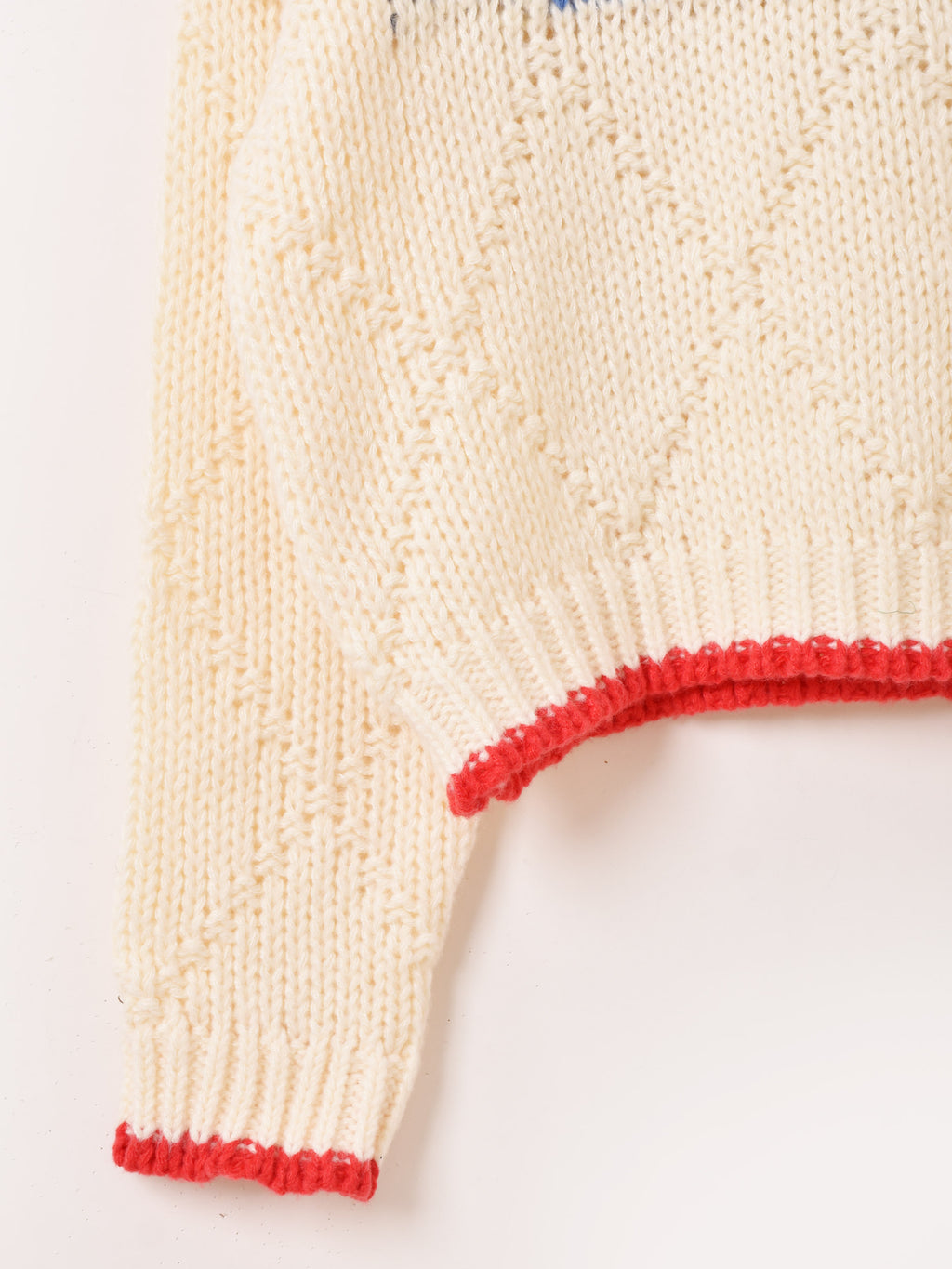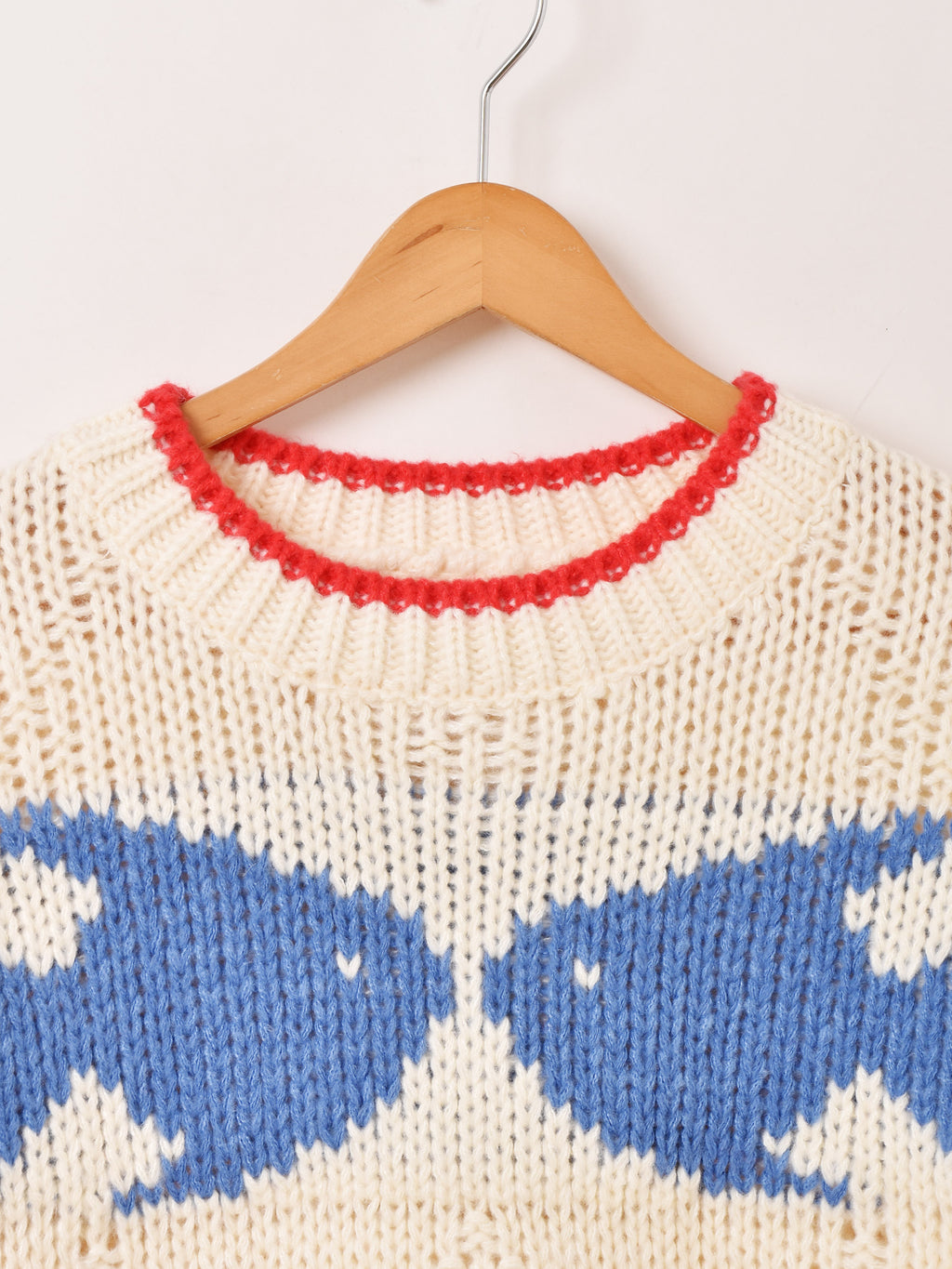 魚のモチーフが編まれた、古着風デザインのセーター。パイピングカラーもアクセントに。ざっくりとしたローケージニットが可愛らしく、ルーズな着こなしにおすすめです。
