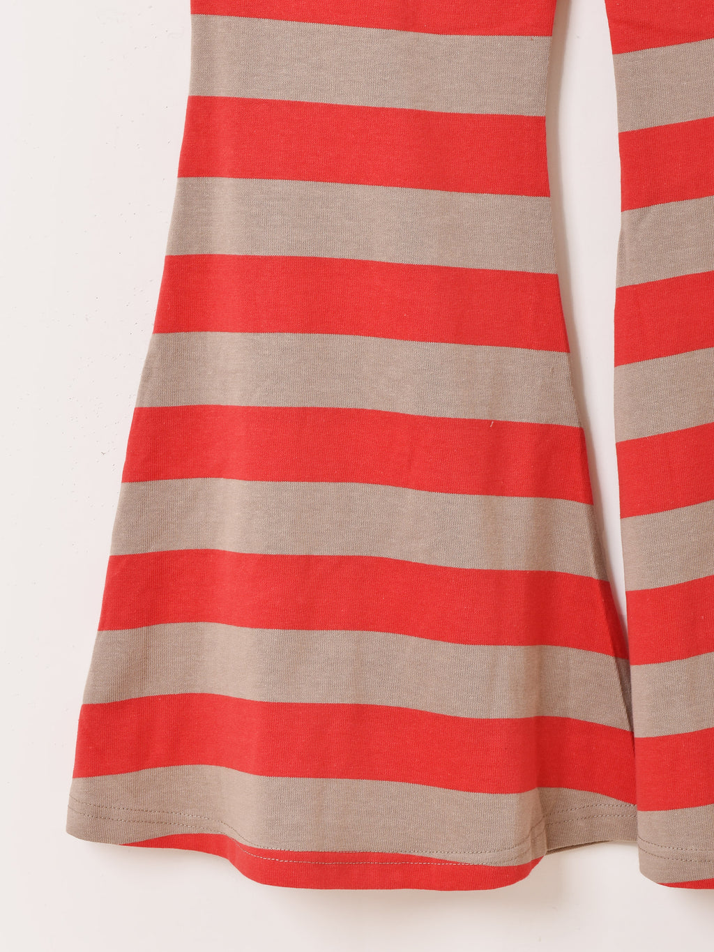 ポップなボーダーデザインのロングパンツ。スタイルアップ効果抜群のフレアシルエットでコーデの主役だけでなく、レイヤードアイテムとしても着回せます。Tシャツのようなコットン生地が履き心地も良い一着です。
