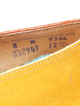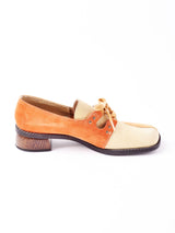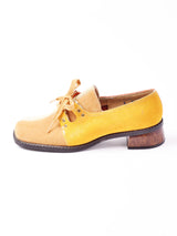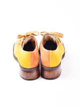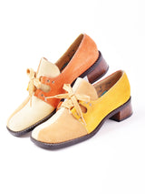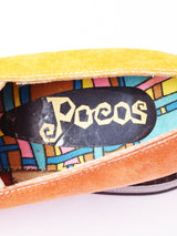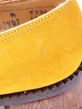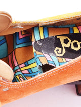 同色系でまとめられた配色やインソールのポップな柄など、ビンテージらしいデザインがつまっています。ウッド調な厚みのあるソールやスクエアトゥはデザイン性もありながら、履きやすさも兼ね備えています。全体的に使用感が少なく比較的コンディションがいいです。