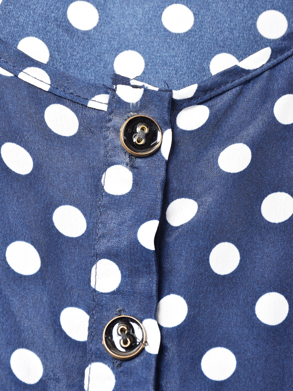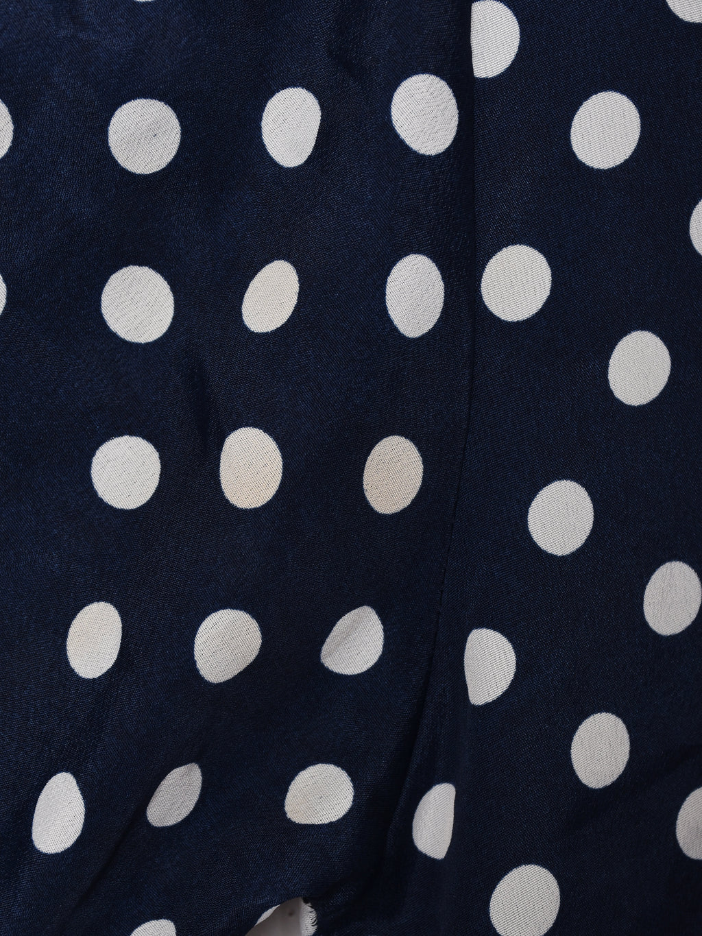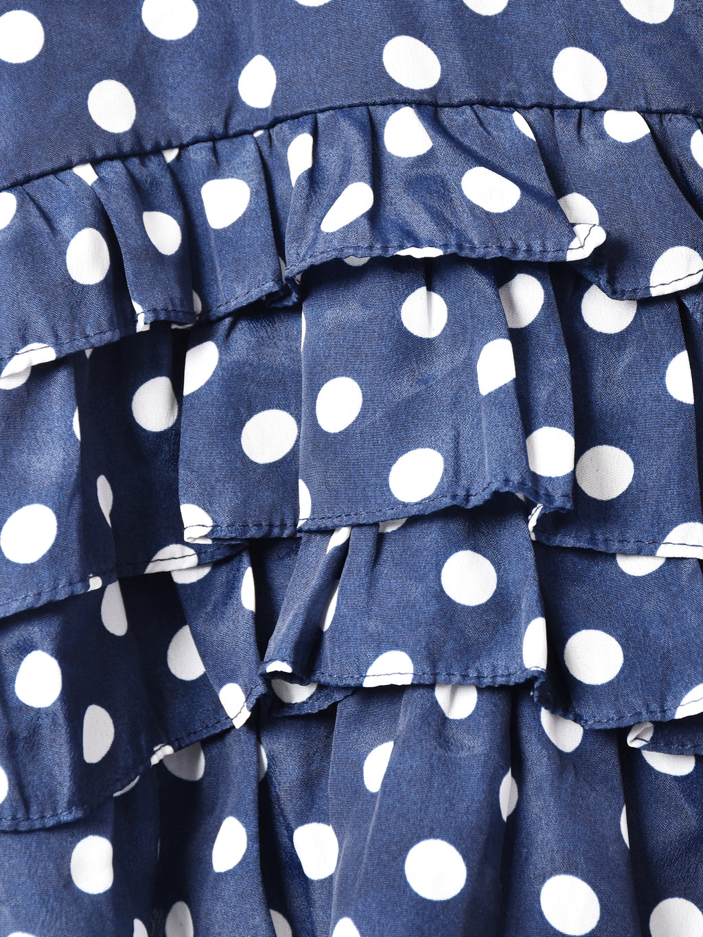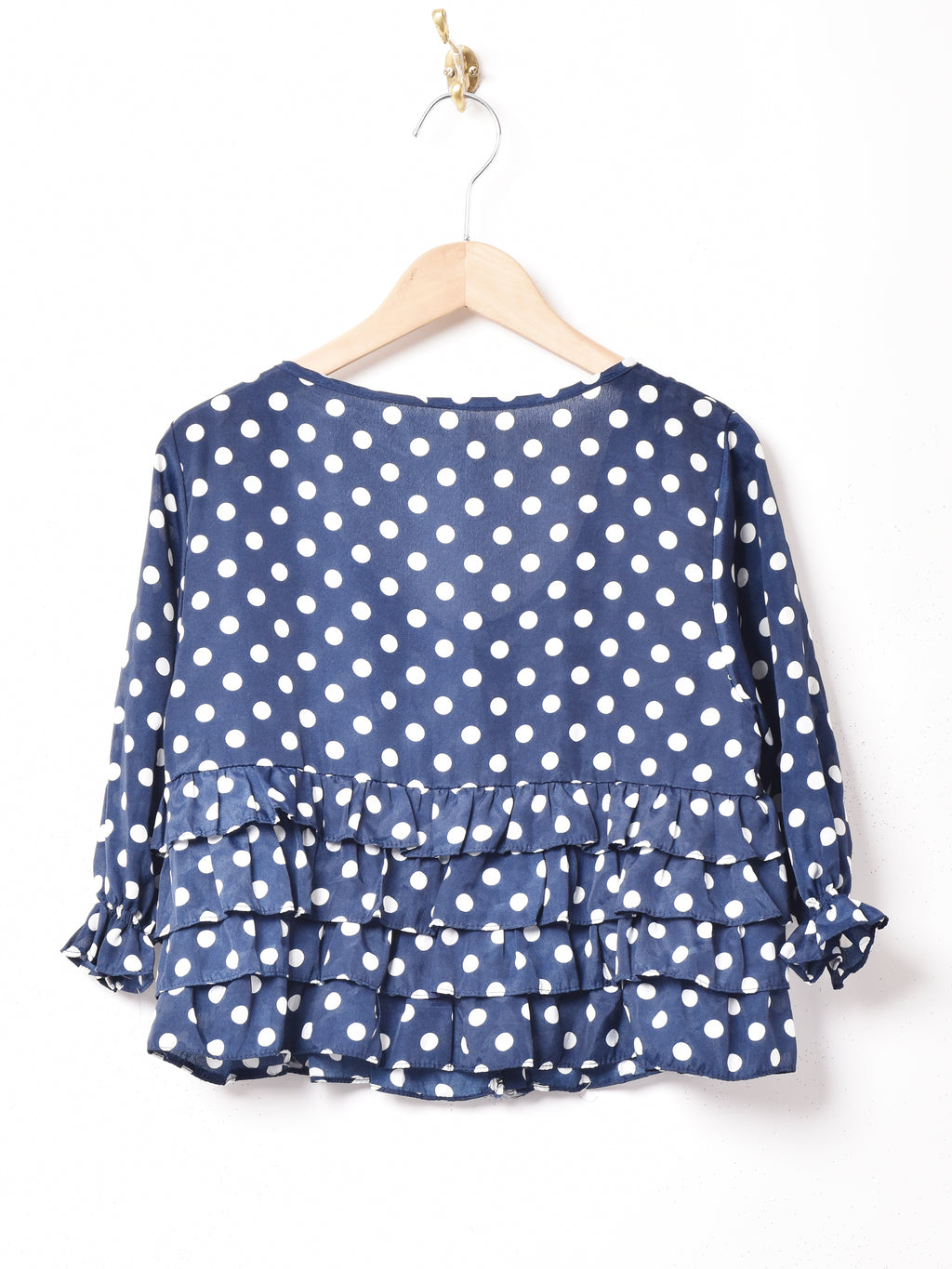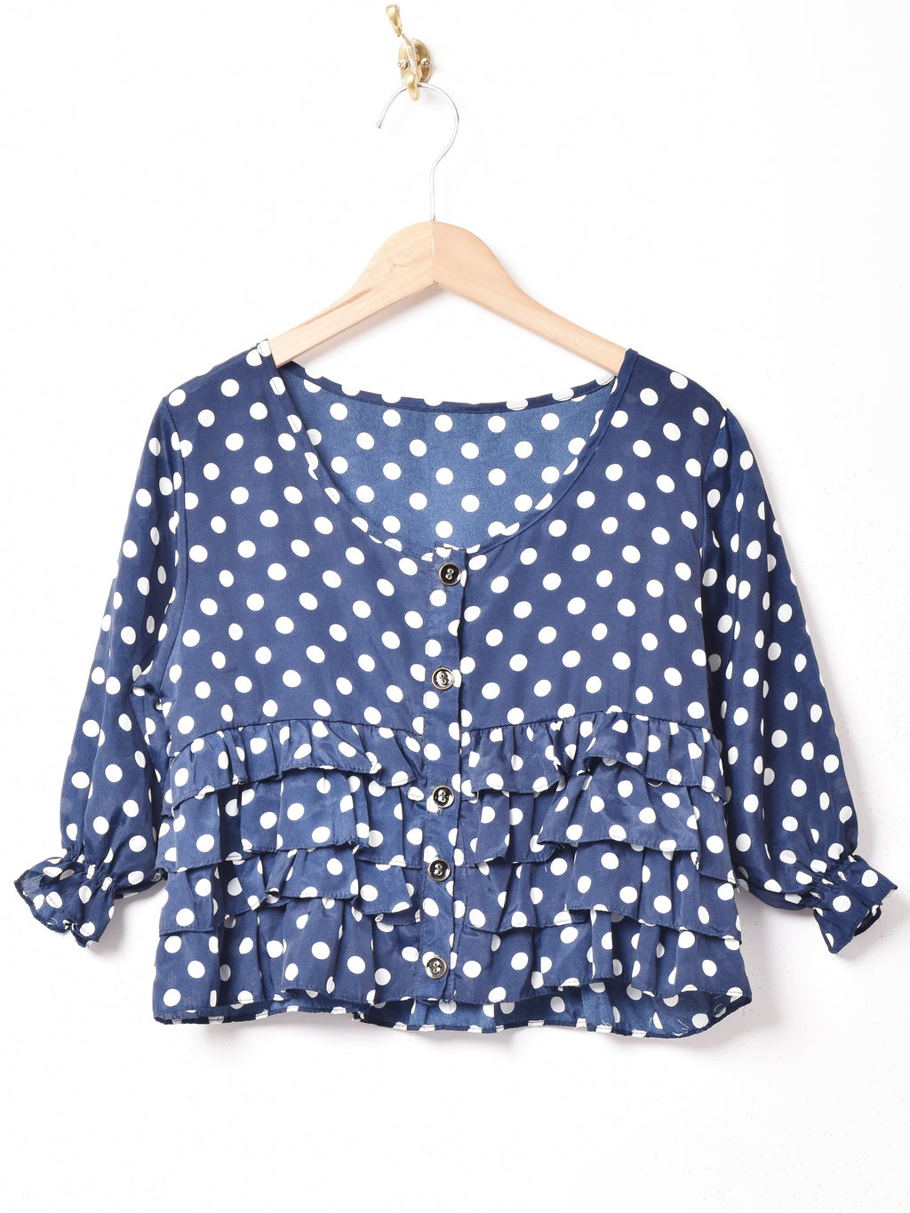 ドットにフリルながらも甘すぎない絶妙なバランスのトップス。クロップド丈でスタイルアップ効果も。おそらくポリエステル素材で、薄手で軽い生地感です。