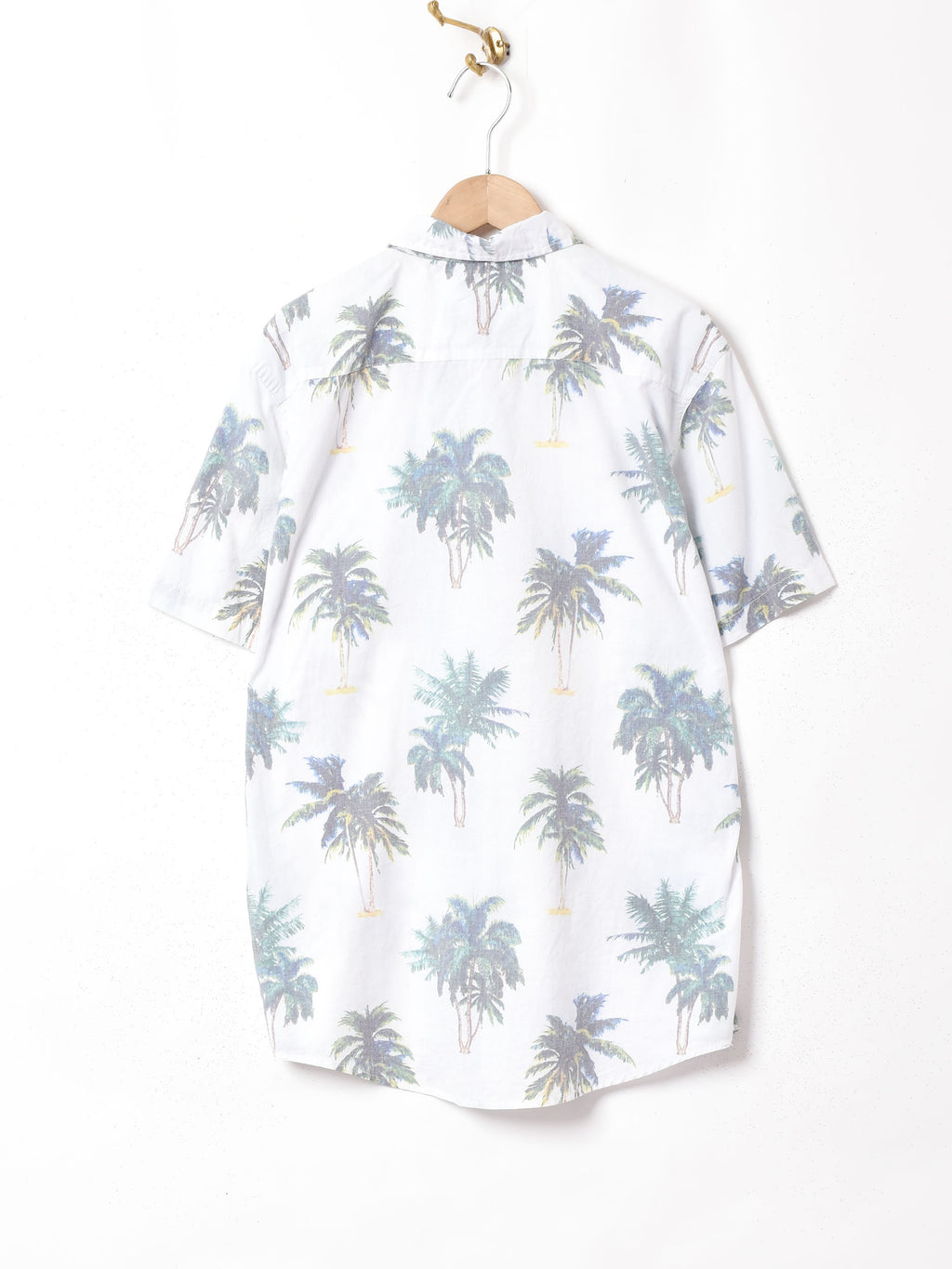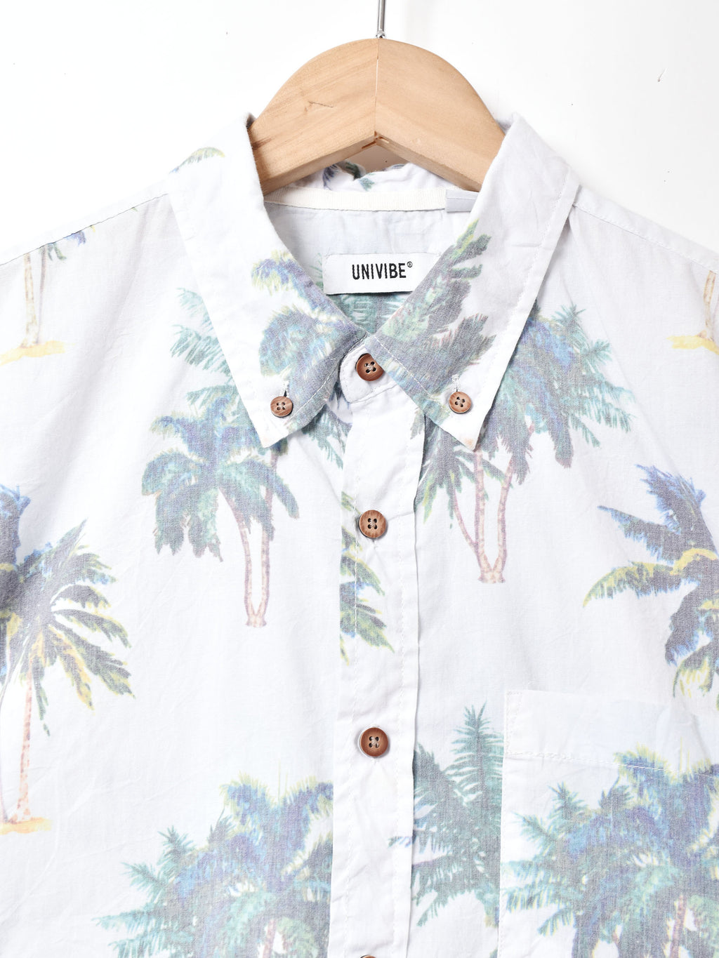 擦れたようなプリントが雰囲気のよいアロハシャツ。スタンダードなシャツ型が着こなしに取り入れやすく、薄手の柔らかな生地が着心地のよい一枚です。